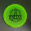 “Champion line is produced with a hi-tech plastic that provides outstanding performance and durability. Champion discs are distinguished by a beautiful clear appearance. Designed for professional players, Champion line discs are usually a little firmer and more stable than the same model in other plastics. Whether used in heavily wooded situations, or on extremely rugged courses, our Champion line plastic will continue to perform predictably and avoid damage better than any other plastic. Most Champion line discs are available for custom hot stamping.”
